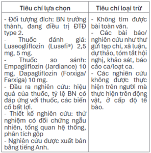 Nghiên cứu này nhằm tổng quan hệ thống và so sánh hiệu quả, tính an toàn của Luseogliflozin so với Empagliflozin và Dapagliflozin ở bệnh nhân đái tháo đường type 2.
